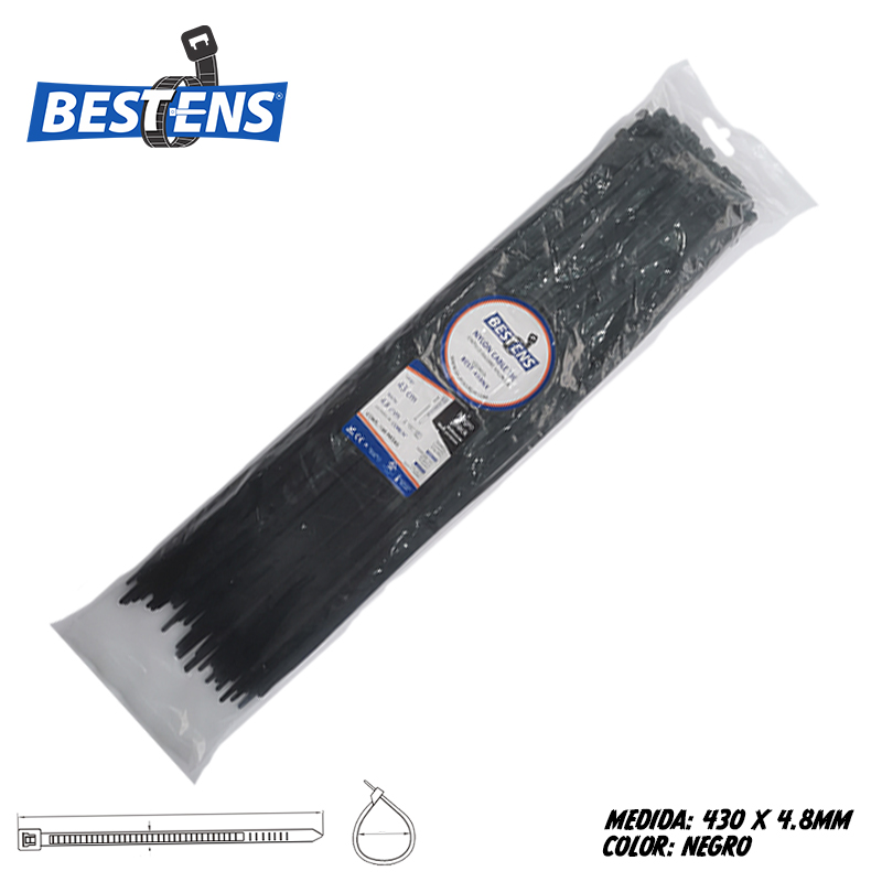 Cintillo de nylon 6.6 (ul) de amarre 430×4.8mm (43cm) 17″ negro x 100pz