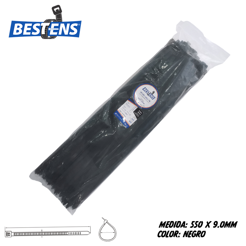 Cintillo de nylon 6.6 (ul) de amarre 550×9.0mm (55cm) 23 5/8″ negro x 100pz