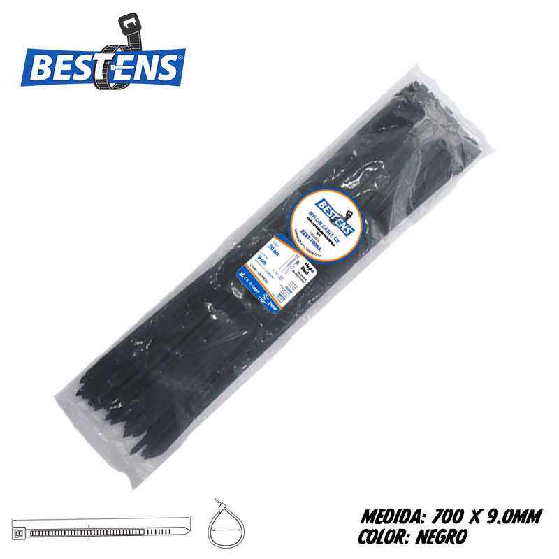 Cintillo de nylon 6.6 (ul) de amarre 700×9.0mm (70cm) 27 1/2″ negro x 100pz