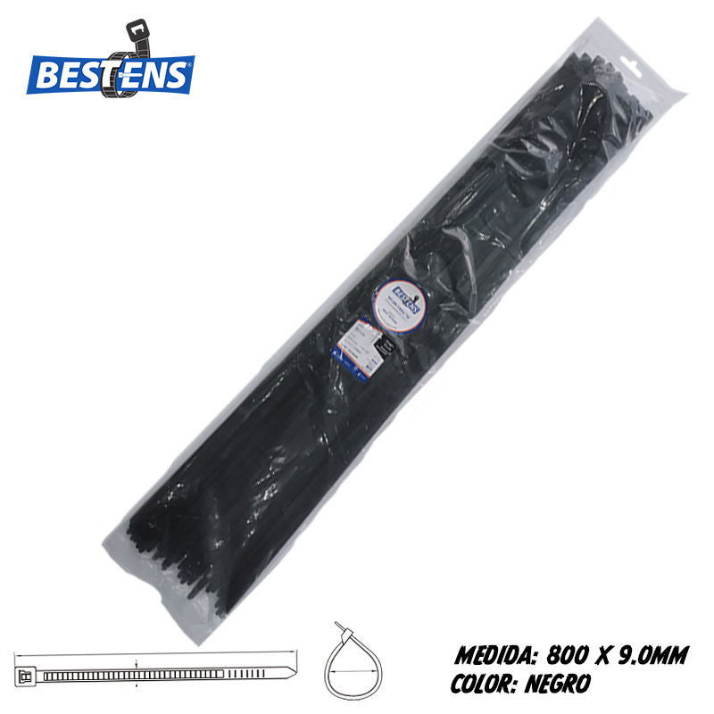 Cintillo de nylon 6.6 (ul) de amarre 800×9.0mm (80cm) negro x 100pz
