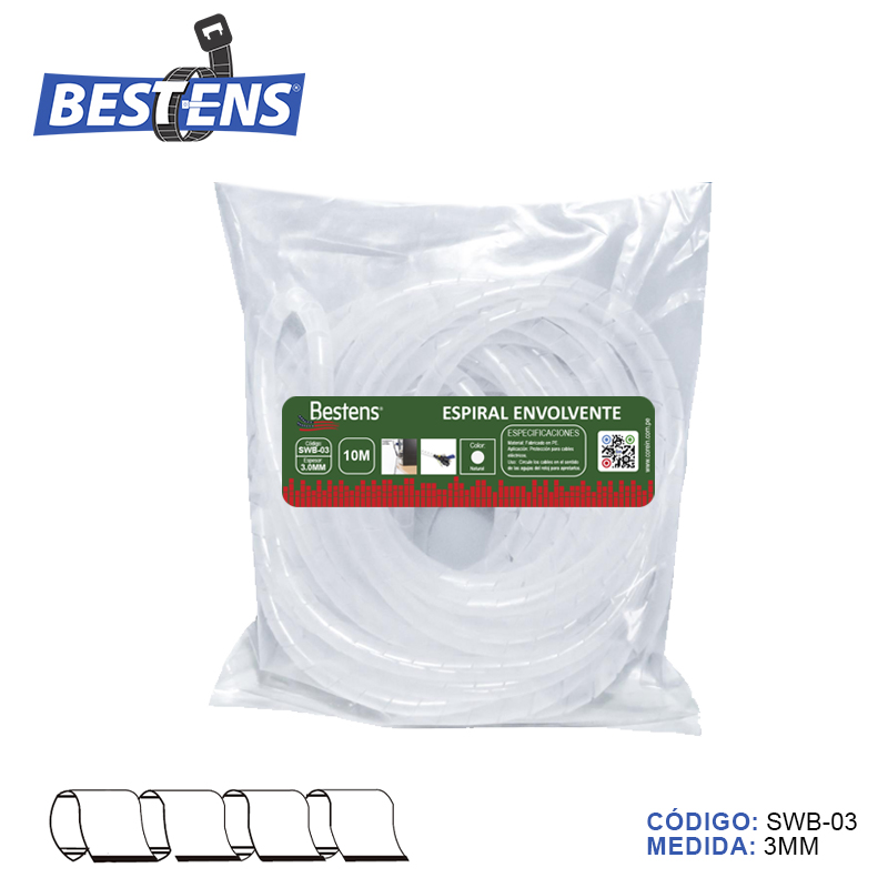 Envoltura en espiral banda organizador de cable c/natural (dim. 3.0mm x 10mts