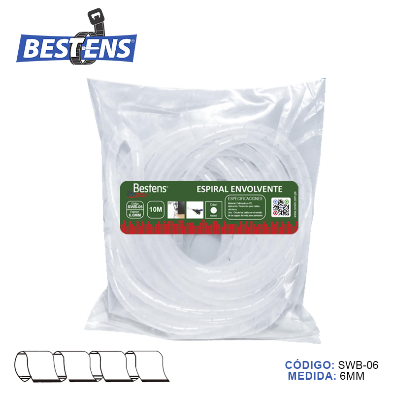 Envoltura en espiral banda organizador de cable c/natural (dim. 6.0mm x 10mts