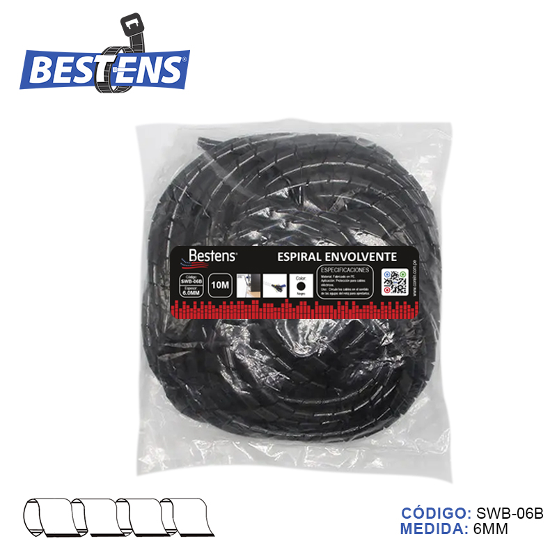 Envoltura en espiral banda organizador de cable c/negro (dim. 6.0mm x 10mts