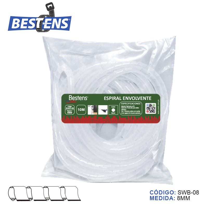 Envoltura en espiral banda organizador de cable c/natural (dim. 8mm x 10mts