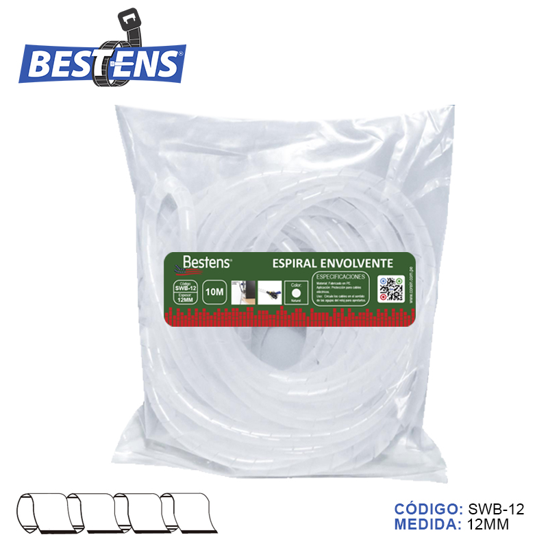 Envoltura en espiral banda organizador de cable c/natural (dim. 12mm x 10mts