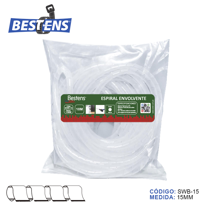 Envoltura en espiral banda organizador de cable c/natural (dim. 15mm x 10mts
