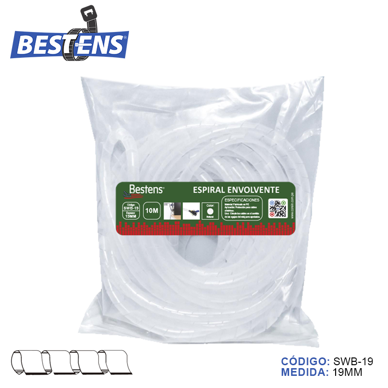 Envoltura en espiral banda organizador de cable c/natural (dim. 19mm x 10mts