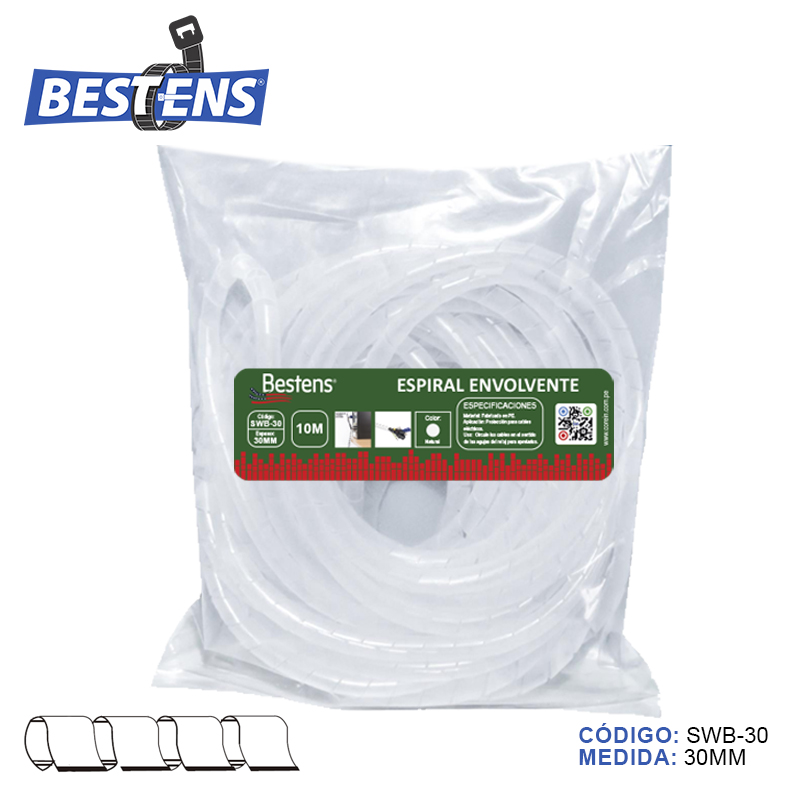 Envoltura en espiral banda organizador de cable c/natural (dim. 30mm x 10mts
