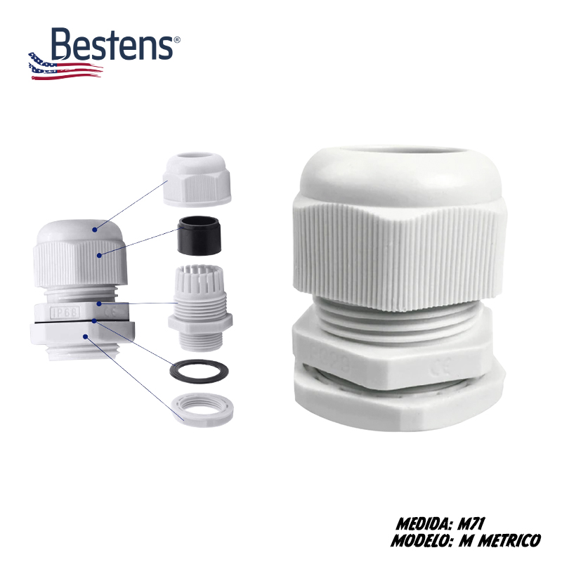 Prensaestopa de nylon tipo metrico m71 ip68 blanco ul (long.rosc.28mm) cable 42-50