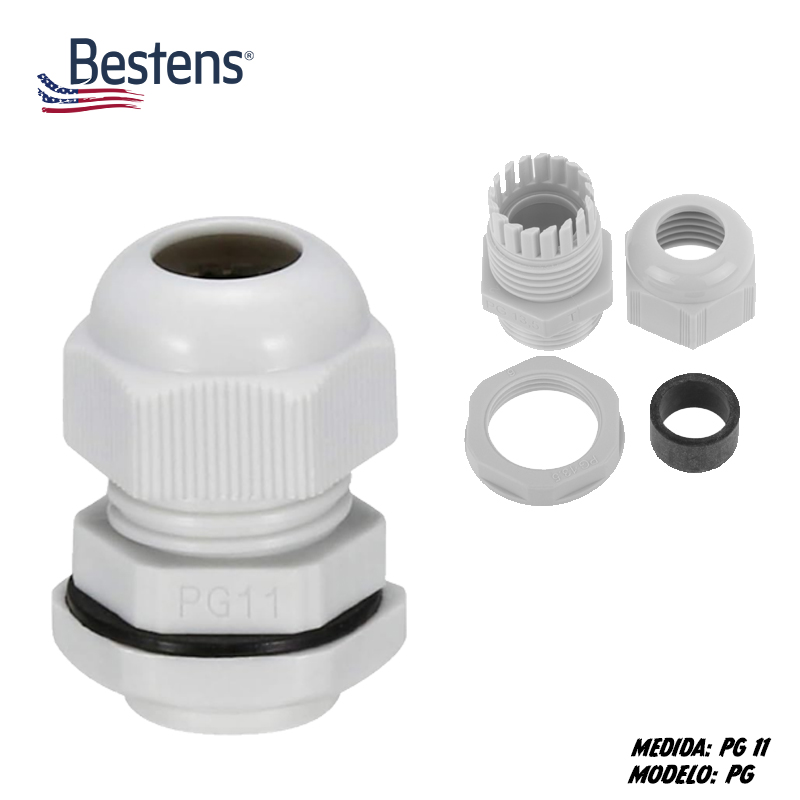 Prensaestopa de nylon tipo pg 11 ip68 blanco ul (long.rosc.8mm) cable 5-10