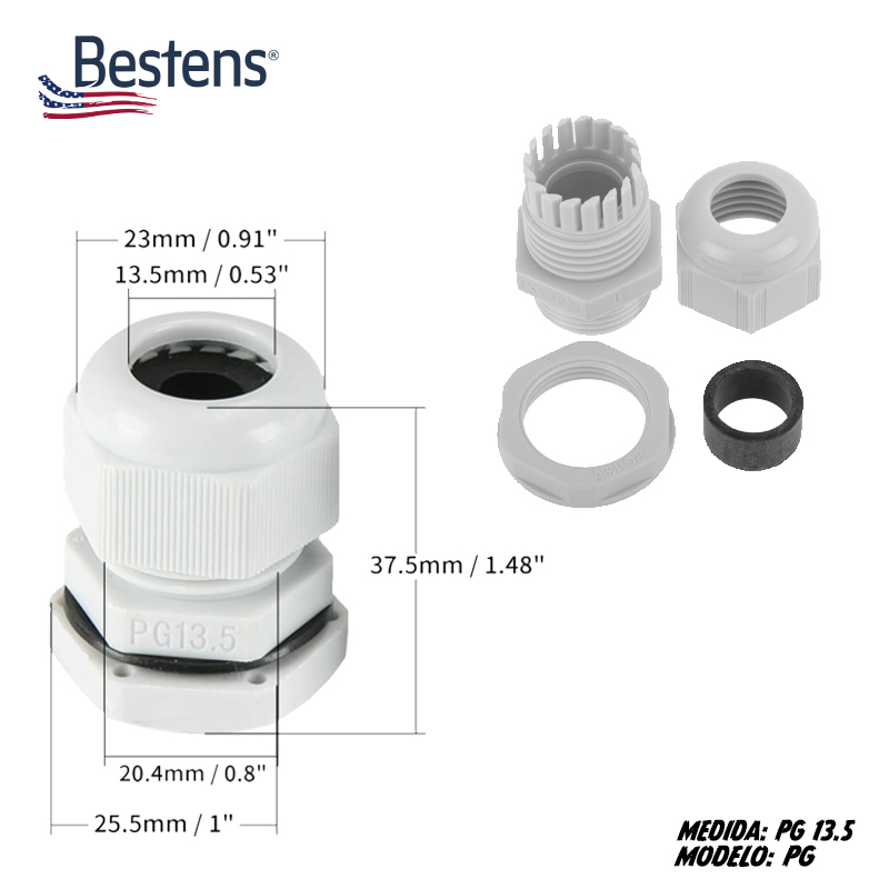 Prensaestopa de nylon tipo pg 21 ip68 blanco ul (long.rosc.10mm) cable 13-18