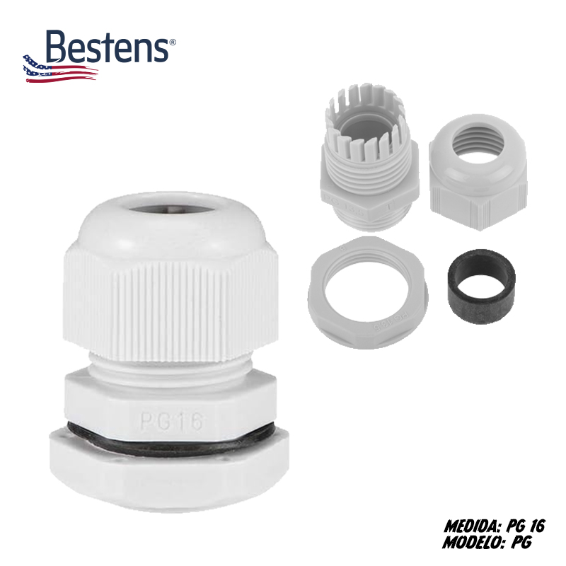 Prensaestopa de nylon tipo pg 16 ip68 blanco ul (long.rosc.10mm) cable 10-14