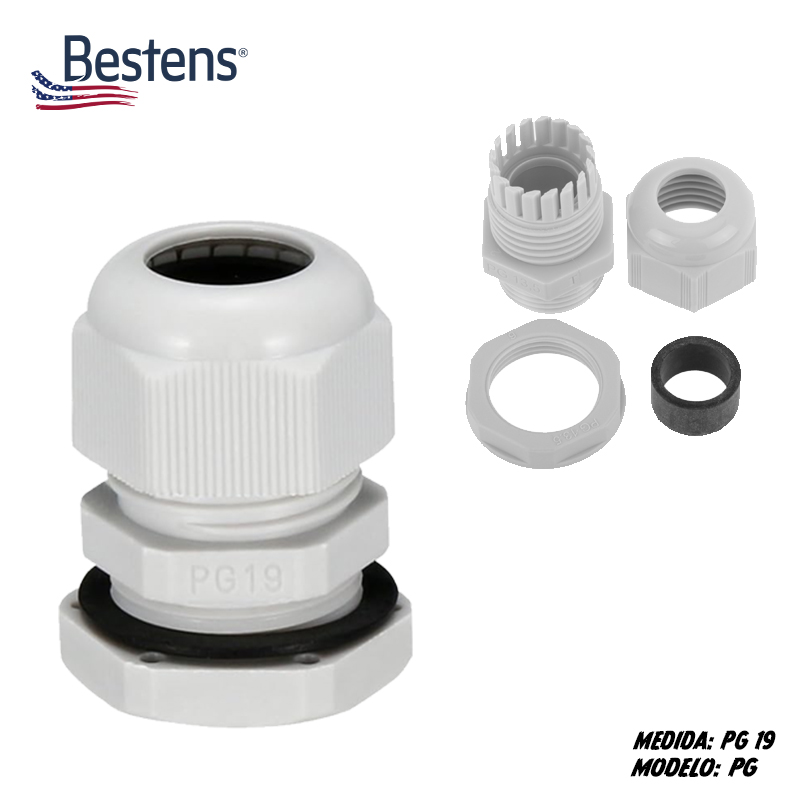Prensaestopa de nylon tipo pg 19 ip68 blanco ul (long.rosc.10mm) cable 12-16