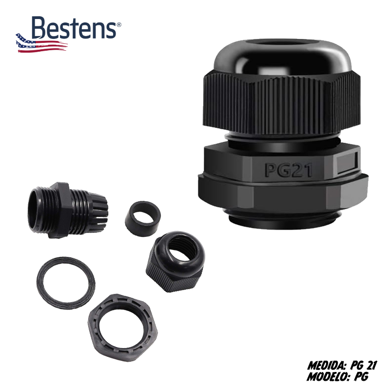 Prensaestopa de nylon tipo pg 21 ip68 negro ul (long.rosc.10mm) cable 13-18