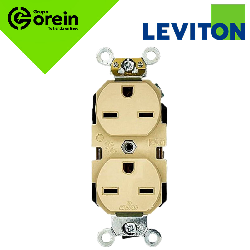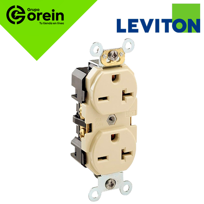 TOMA DOBLE EMPOTRABLE TIPO NORMAL/ TUERTO CHINO GRADO INDUSTRIAL 2X20A L/T 125V MARFIL