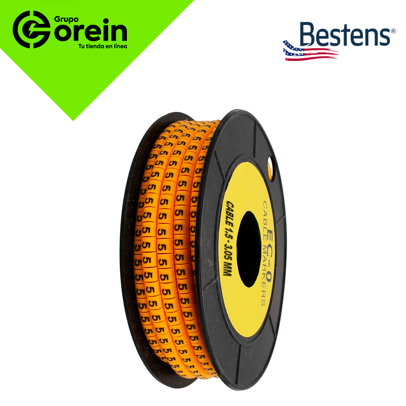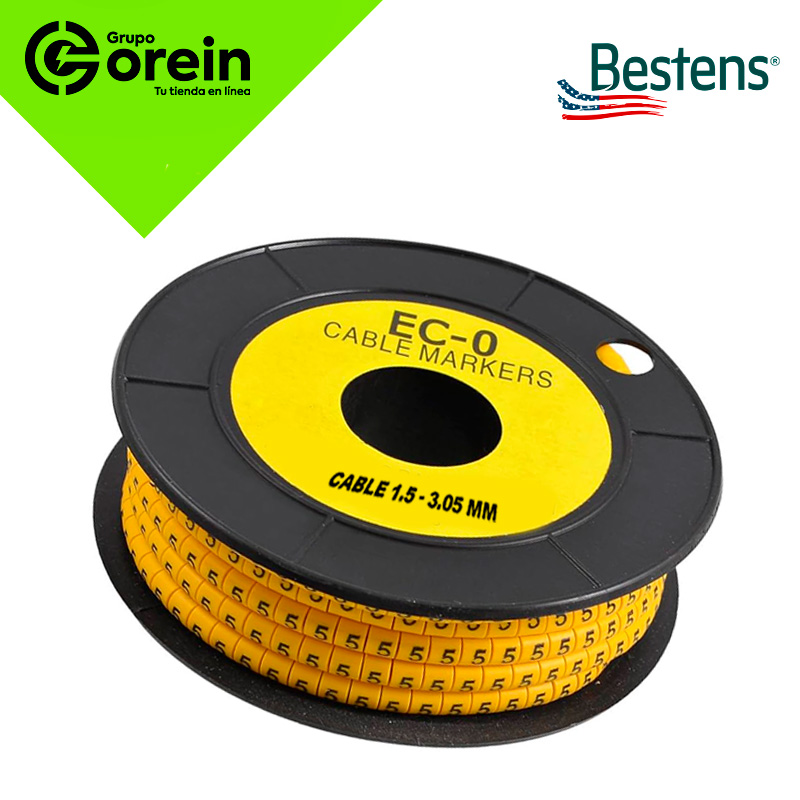 MARCADOR TIPO ARO EC-0 NUMERO (5) CABLE 1.5-3.05MM AMARILLO X 1000U