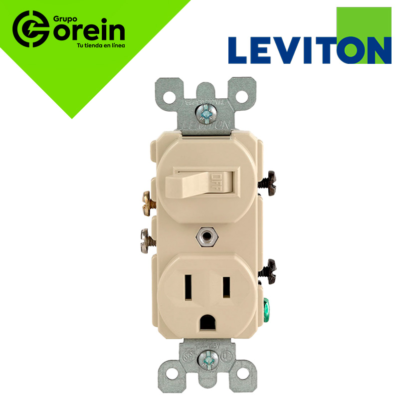 TOMA DOBLE EMPOTRABLE CON INTERRUPTOR DE PALANCA 2X15A L/T 120/125V MARFIL