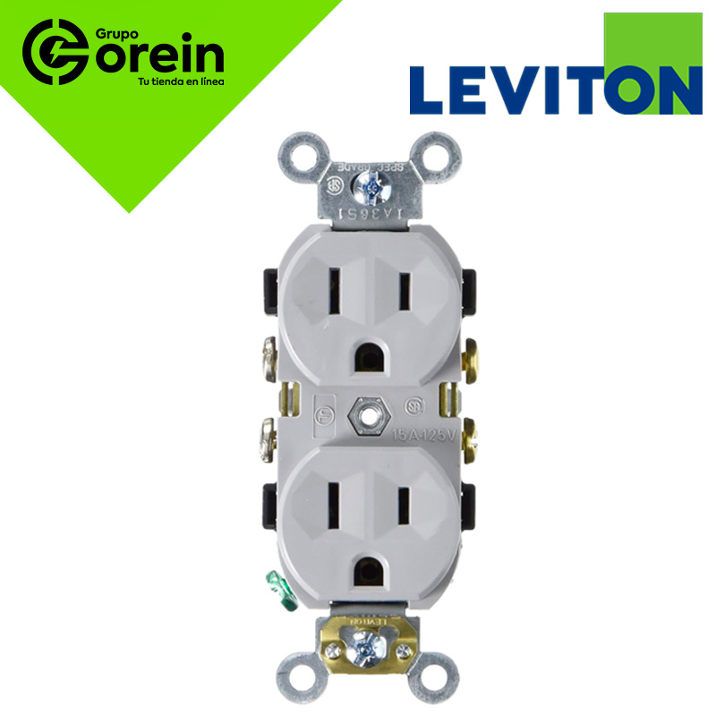 TOMA DOBLE EMPOTRABLE COMERCIAL 2X15A L/T 125V GRIS