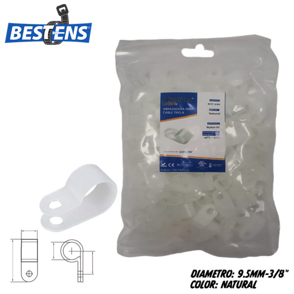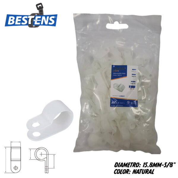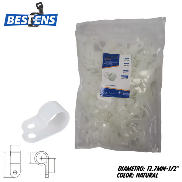 Abrazadera de cable tipo r diam. 12.7mm-1/2″ x bls 100 pz