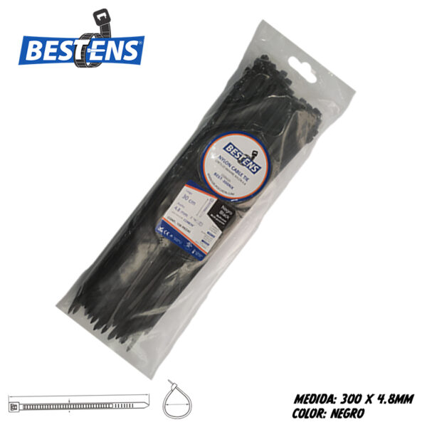 Cintillo de nylon 6.6 (ul) de amarre 380×4.8mm (38cm) 15″ negro x 100pz