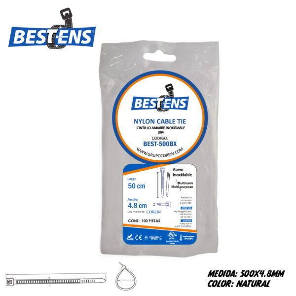 Download(13 MB)Cintillo de nylon 6.6 (ul) de amarre 500x4.8mm (50cm) 19 16/11" natural x 100pz