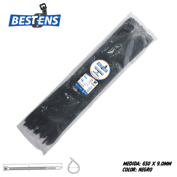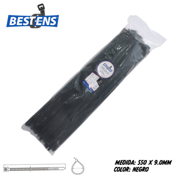 Cintillo de nylon 6.6 (ul) de amarre 600×9.0mm (60cm) 23 5/8″ negro x 100pz