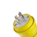 Para exteriores con una capacidad de 20 amperios, capaz de soportar un rango de tensión de 277 a 480 voltios y equipado con una protección contra el agua de tipo Wetguard. Se utiliza para conectar dispositivos eléctricos en áreas al aire libre donde la exposición al agua es un factor a considerar, y se requiere una tensión más alta que la estándar.