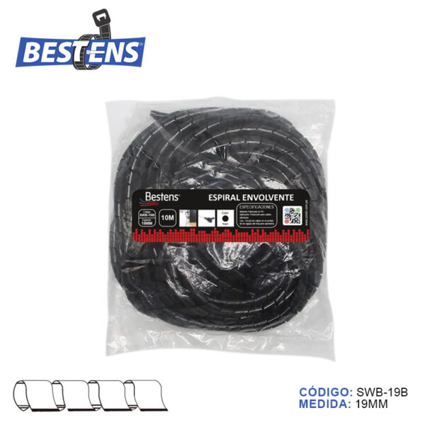 Envoltura en espiral banda organizador de cable c/negro (dim. 15mm x 10mts