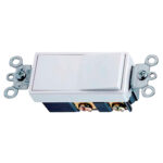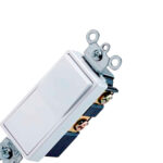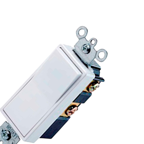 15 Amp, 120/277 Voltios, Interruptor silencioso de doble polo Decora Rocker AC, Grado residencial, Puesta a tierra, Cableado Quickwire Push-In & Side, – Blanco.