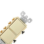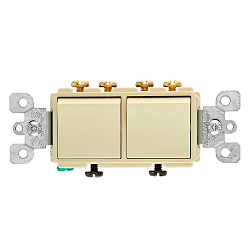 20 A, 120/277 V, Interruptor de combinación de CA de tres vías/tres vías Decora, uso comercial, Conexión a tierra, Cableado lateral, – Marfil