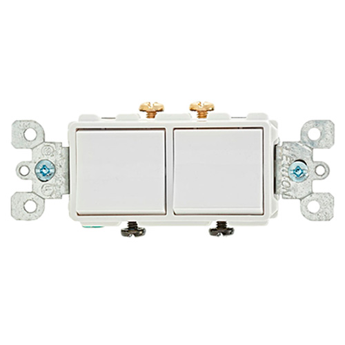15 A, 120/277 V, Interruptor de combinación de CA unipolar/unipolar Decora, uso comercial, Conexión a tierra, Cableado lateral, – Blanco