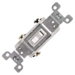 15 A, 120 V, Interruptor de palanca silencioso de CA de tres vías con marco, uso residencial, sin conexión a tierra, Con cableado a presión y lateral Quickwire, : blanco, Fabricado en EE. UU.