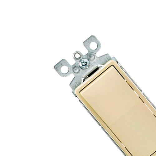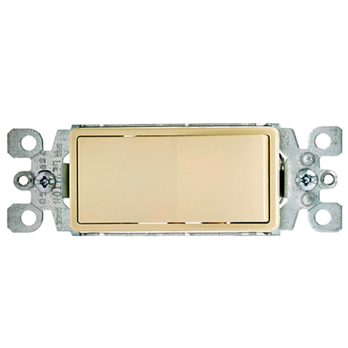 15 A, 120/277 V, Interruptor balancín silencioso de CA de tres vías Decora, uso residencial, conexión a tierra, Con cableado a presión y lateral Quickwire – Marfil
