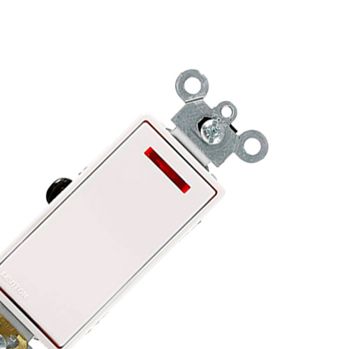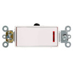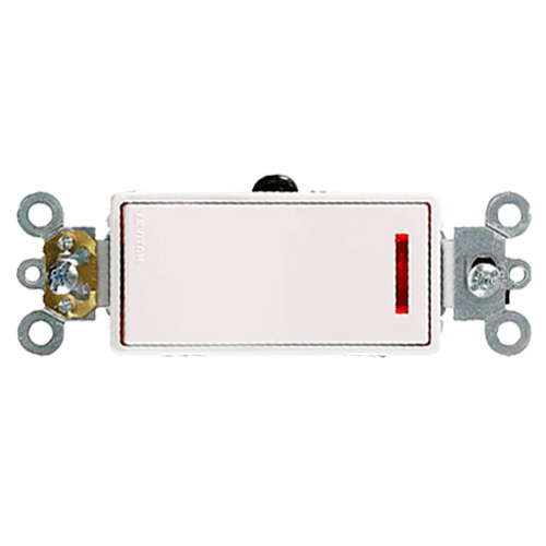 20 A, 277 V, Luz piloto del balancín Decora Plus – Encendido iluminado – Oblig. Interruptor silencioso de CA unipolar, neutro, Grado de especificación comercial, puesta a tierra automática, Cableado posterior y lateral, – Blanco