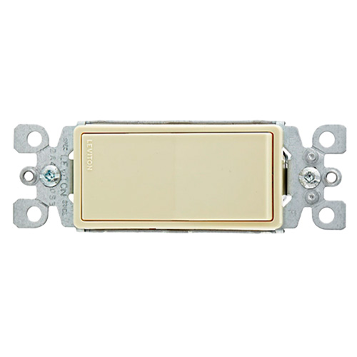15 A, 120/277 V, Interruptor silencioso balancín de CA de un polo Decora, uso residencial, conexión a tierra, Con cableado a presión y lateral Quickwire – Marfil