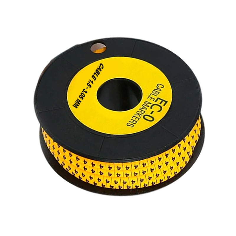 El MARCADOR TIPO ARO EC-0 NUMERO (0) es un identificador de cable amarillo, diseñado para cables con un diámetro de 1.5mm a 3.05mm.