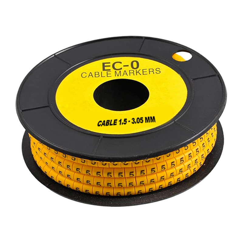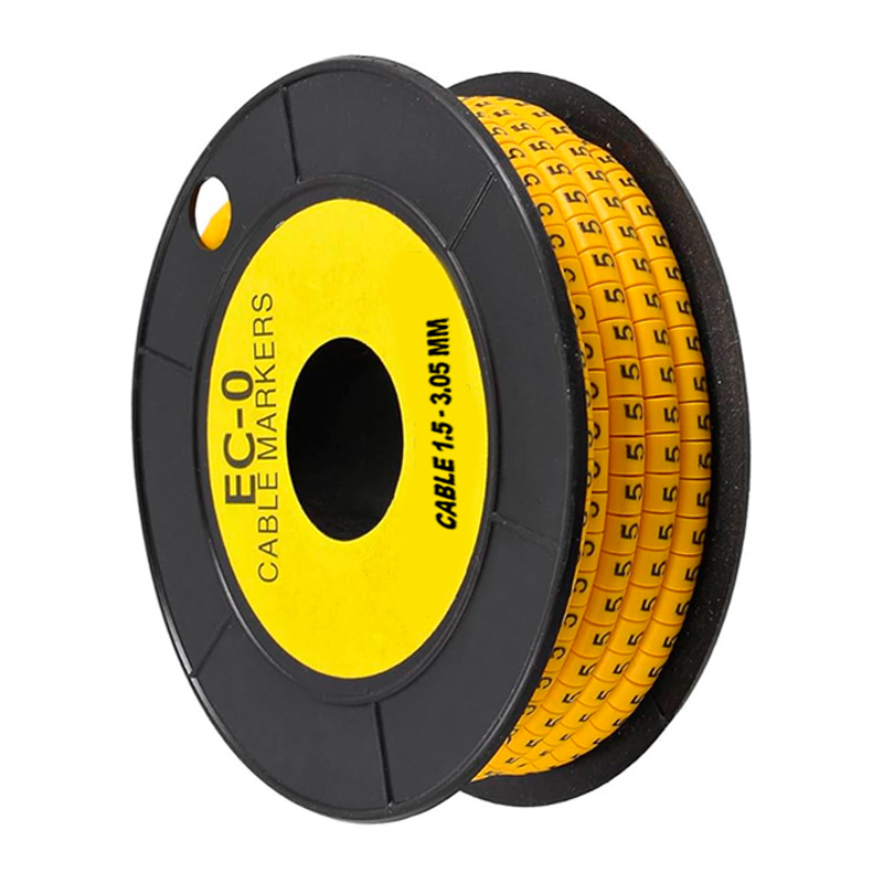 El MARCADOR TIPO ARO EC-0 NUMERO (1) es un identificador de cable amarillo, diseñado para cables con un diámetro de 1.5mm a 3.05mm.