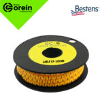 El MARCADOR TIPO ARO EC-0 NUMERO (2) es un identificador de cable amarillo, diseñado para cables con un diámetro de 1.5mm a 3.05mm.