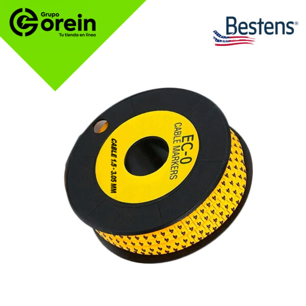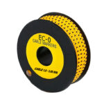 El MARCADOR TIPO ARO EC-0 NUMERO (4) es un identificador de cable amarillo, diseñado para cables con un diámetro de 1.5mm a 3.05mm.