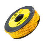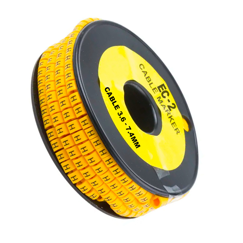 El MARCADOR TIPO ARO EC-2 (I) es un identificador de cable de color amarillo, diseñado para cables con un diámetro que va desde 3.6mm hasta 7.4mm. Se trata de un marcador de tipo anular (en forma de aro), que se coloca alrededor del cable para facilitar su identificación. El color amarillo facilita la visibilidad. Esta cantidad al por mayor es habitual para proyectos eléctricos industriales o de gran escala que requieren la identificación de cables.