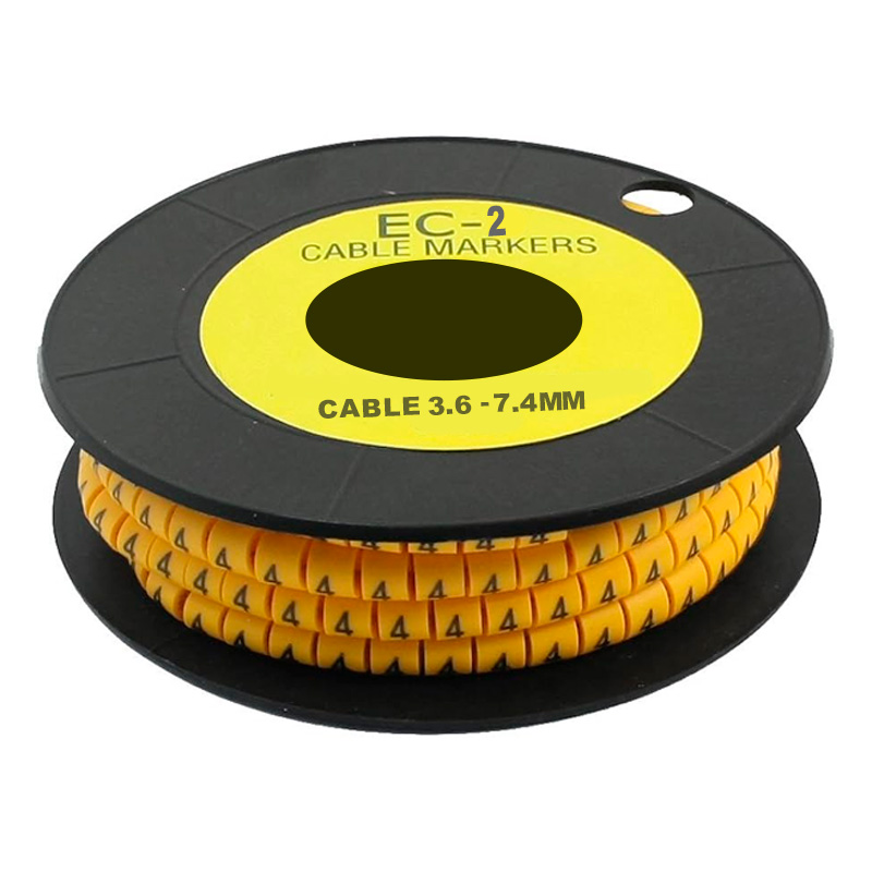 Marcador tipo aro EC-2 número (1), diseñado para identificar cables de 3.6 a 7.4 mm de diámetro. Fabricado en material plástico resistente y color amarillo de alta visibilidad, ideal para aplicaciones eléctricas e industriales. Número “0” para una identificación precisa en instalaciones exigentes. Presentación de 500 unidades.