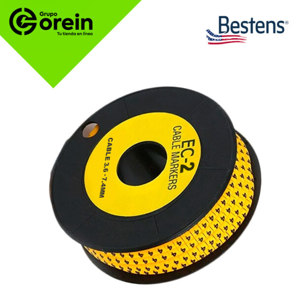 Marcador tipo aro EC-2 número (4), diseñado para identificar cables de 3.6 a 7.4 mm de diámetro. Fabricado en material plástico resistente y color amarillo de alta visibilidad, ideal para aplicaciones eléctricas e industriales. Número “0” para una identificación precisa en instalaciones exigentes. Presentación de 500 unidades.