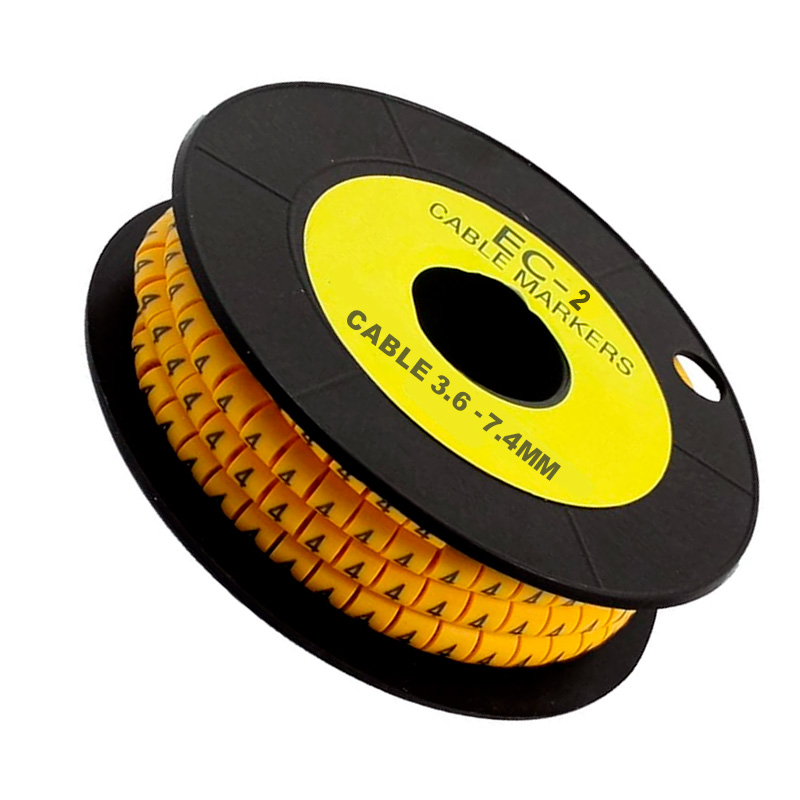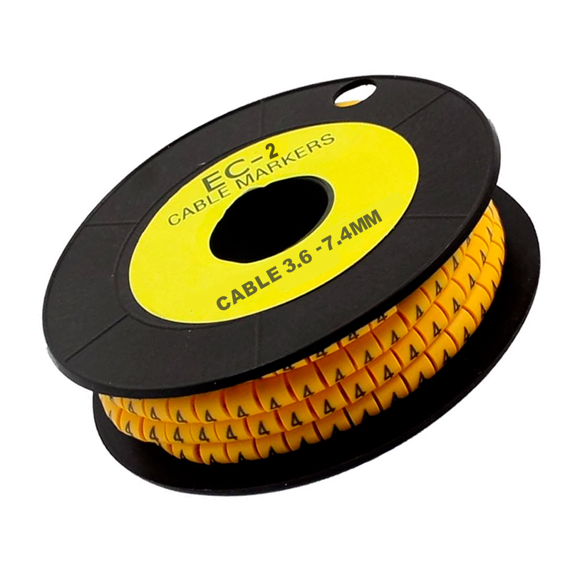 Marcador aro EC-2 número 6, color amarillo, para cables 3.6–7.4 mm. Pack x 500 unidades.