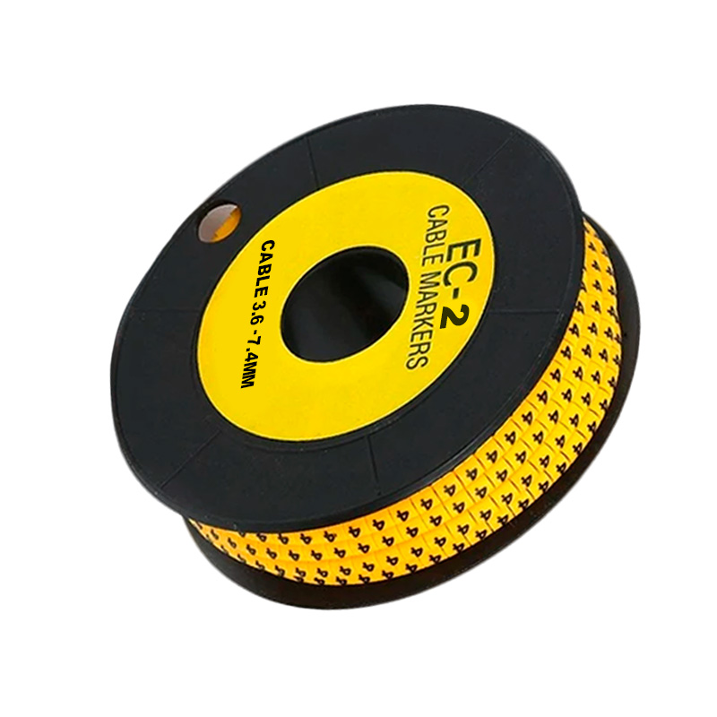 Marcador tipo aro EC-2 número (8), diseñado para identificar cables de 3.6 a 7.4 mm de diámetro. Fabricado en material plástico resistente y color amarillo de alta visibilidad, ideal para aplicaciones eléctricas e industriales. Número “0” para una identificación precisa en instalaciones exigentes. Presentación de 500 unidades.