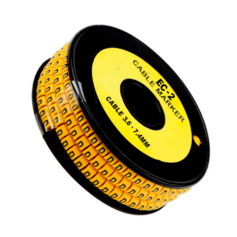 El MARCADOR TIPO ARO EC-2 (Q) es un identificador de cable de color amarillo, diseñado para cables con un diámetro que va desde 3.6mm hasta 7.4mm. Se trata de un marcador de tipo anular (en forma de aro), que se coloca alrededor del cable para facilitar su identificación. El color amarillo facilita la visibilidad. Esta cantidad al por mayor es habitual para proyectos eléctricos industriales o de gran escala que requieren la identificación de cables.
