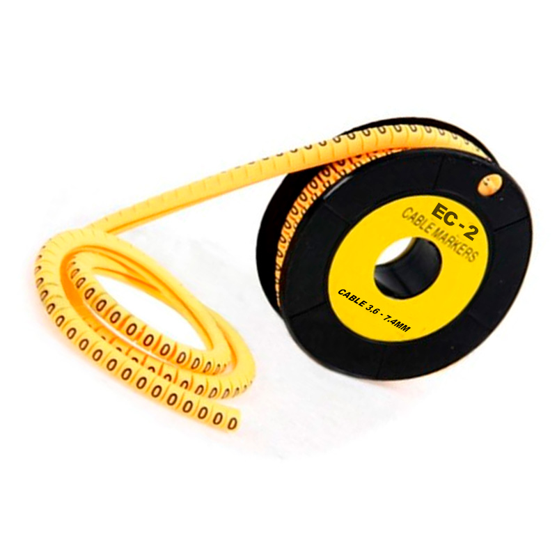 500 marcadores de cable amarillos (modelo EC-2R), tipo aro, para cables de 3,6-7,4 mm.