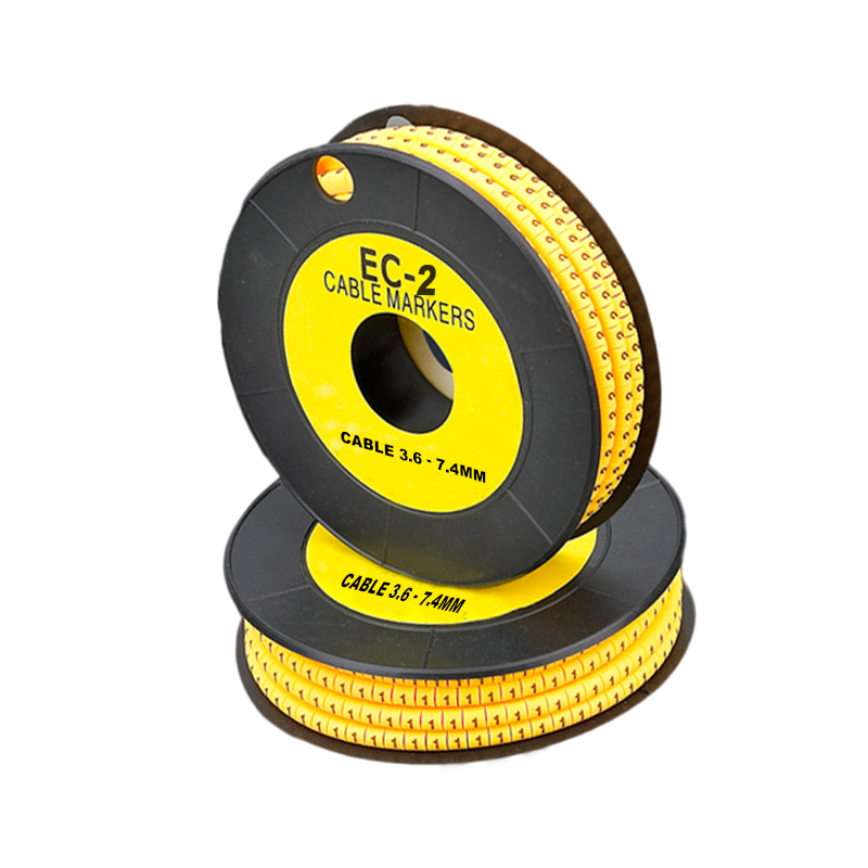 El MARCADOR TIPO ARO EC-2 (T) es un identificador de cable de color amarillo, diseñado para cables con un diámetro que va desde 3.6mm hasta 7.4mm. Se trata de un marcador de tipo anular (en forma de aro), que se coloca alrededor del cable para facilitar su identificación. El color amarillo facilita la visibilidad. Esta cantidad al por mayor es habitual para proyectos eléctricos industriales o de gran escala que requieren la identificación de cables.