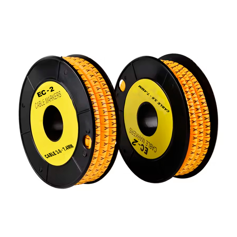 El MARCADOR TIPO ARO EC-2 (U) es un identificador de cable de color amarillo, diseñado para cables con un diámetro que va desde 3.6mm hasta 7.4mm. Se trata de un marcador de tipo anular (en forma de aro), que se coloca alrededor del cable para facilitar su identificación. El color amarillo facilita la visibilidad. Esta cantidad al por mayor es habitual para proyectos eléctricos industriales o de gran escala que requieren la identificación de cables.
