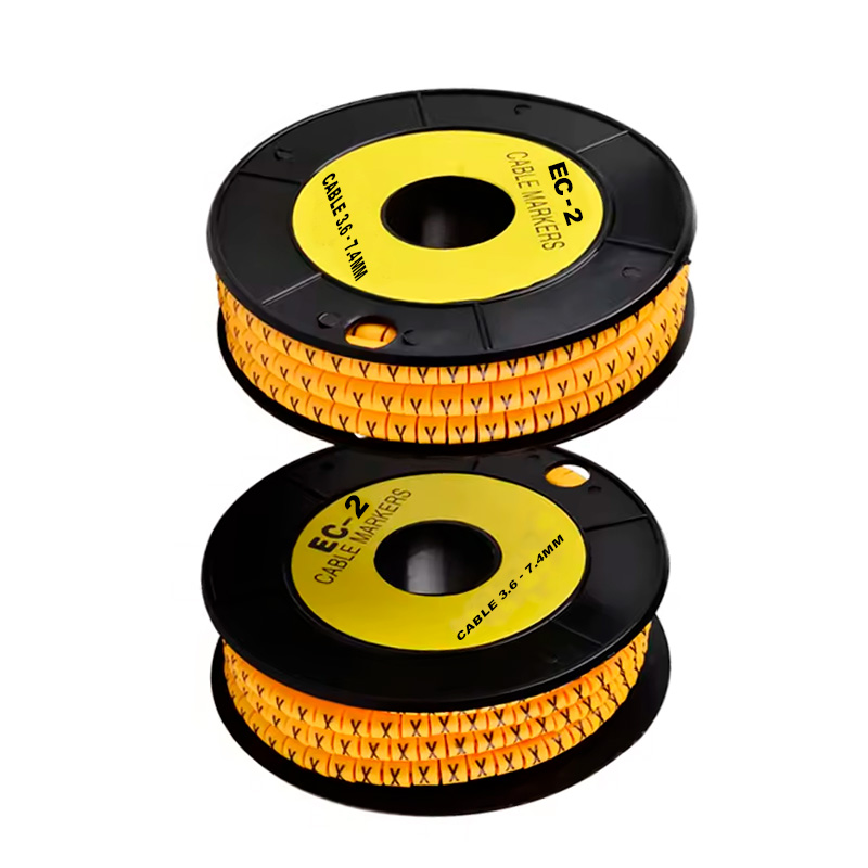 500 marcadores de cable amarillos (modelo EC-2), tipo aro, para cables de 3.6-7.4mm.