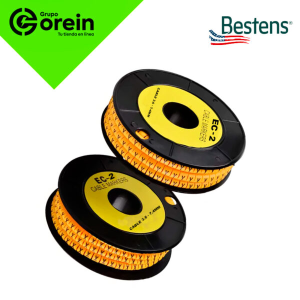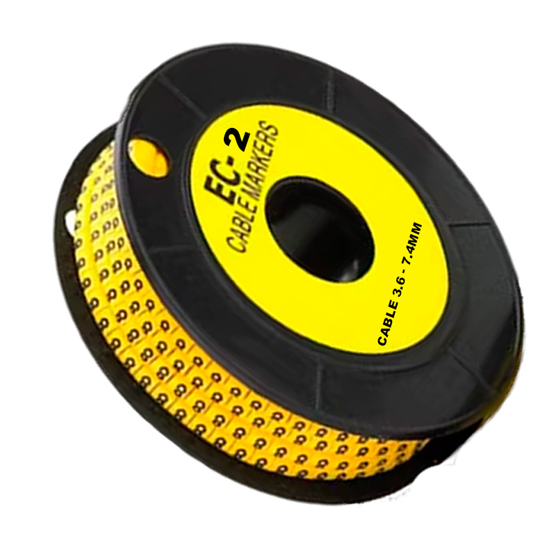 500 marcadores de cable amarillos (modelo EC-2Y), tipo aro, para cables de 3,6-7,4 mm.